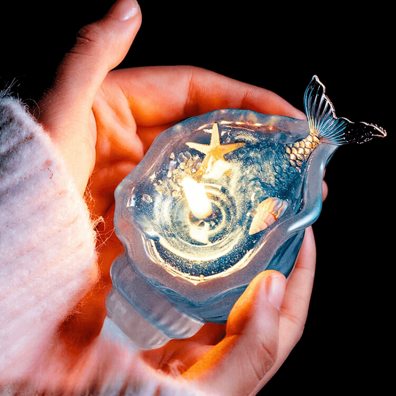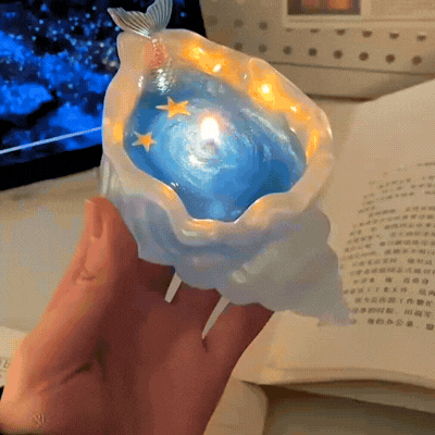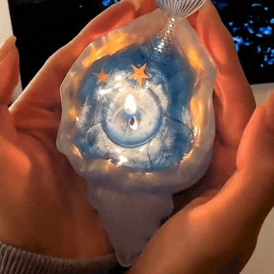貝殻に包まれた柔らかな炎は、まるで海の一部のよう。人魚のしっぽ、金色のヒトデ、渦巻くブルーのキャンドルが、沿岸の静けさと海の魔法をお部屋にもたらします.。